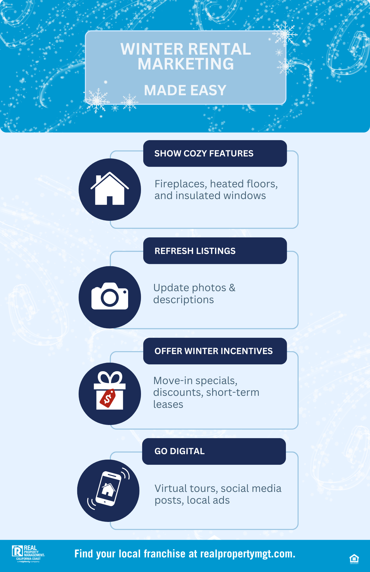Need help keeping your properties filled this winter? Contact Real Property Management California Coast today to learn how our expert property management services can maximize your occupancy year-round.